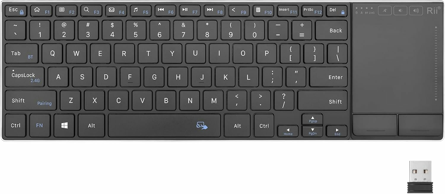 Conception ergonomique : le clavier sans fil Rii 2,4 GHz et Bluetooth est fabriqué en acier inoxydable et en ABS de haute qualité. Facile à transporter dans votre maison pour taper confortablement dans n'importe quelle pièce.